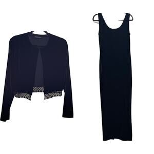 Kurtz Black Velvet Maxi Dress 2 PC SZ 8 Formal Timeless Cropped Jacket Glam