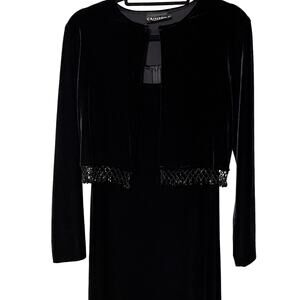 23006 Crimson Lawrence Kurtz Black Velvet Maxi Dress 2 Piece SZ 8 Cropped Jacket Beaded Hem Glam