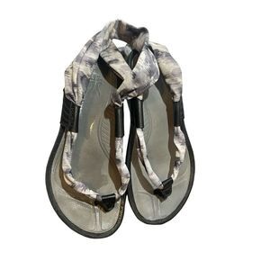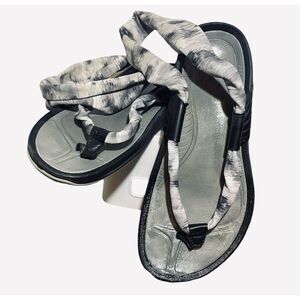 Fabric wrap thong sling back sandals, secure fit, soft around feet from fabric, outsole added comfort and fun tie die look and signature logo