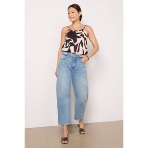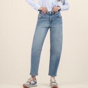 A slight barrel silhouette brings a modern, effortlessly cool feel made in a hint of stretch vintage-inspired denim with a high rise fit. Dress them up with a silky blouse and heels or dress them down with a knit tee and sneakers.