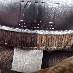 Elegant brown corduroy trousers by Kut. Ideal for any casual outing. W"14 Hips 17" Inseam 32"