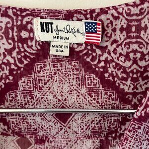 Kut From Kloth Boho Faux Wrap Top Mixed Maroon Print Size Medium