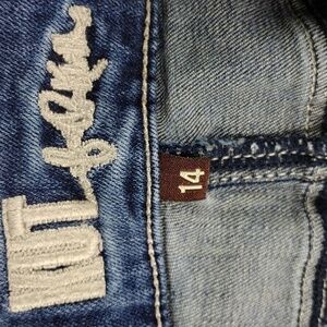 Kut From The Kloth Women's Plus Blue Medium Wash Whiskering Five Pocket Mid High Rise Two Button Zipper Front Closure Raw Hem Straight Leg Ankle Denim Jeans. 98% Cotton, 2% Spandex. Normal Wash Wear. Measurements approx. Flat Lay. Waist: 17.5, Rise: l0, Hips: 19, Inseam: 27, Hem Opening: 7". Size 14. Color May Vary Due To Lighting. Offers Welcomed!