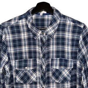 Kut From The Kloth Blue Plaid Snap Front Roll Tab Shirt Top Size L