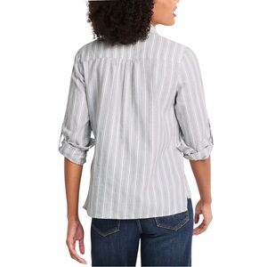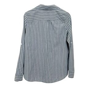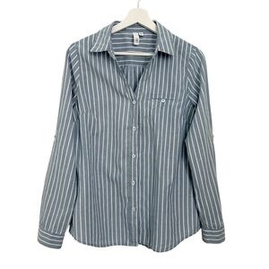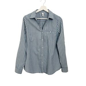 Kut From The Kloth Blue Stripe Button Up Roll Tab Sleeve Blouse