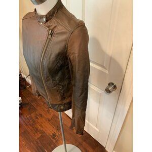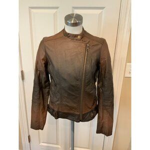 Kut From The Kloth Brown Vegan Leather Zip-Up Moto Jacket, Size Small