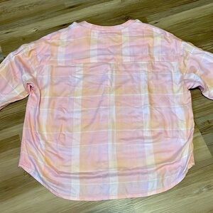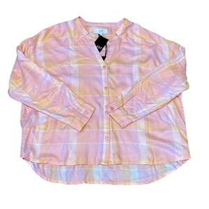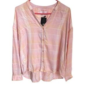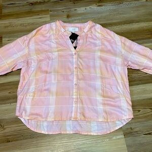 Kut From The Kloth Button up shirt Light Pink/Peach plaid Womens XS Boxy fit NWT