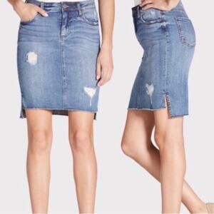 Kut From The Kloth “Connie” Distressed Denim Pencil Skirt-Size 4-Raw Edge Hem