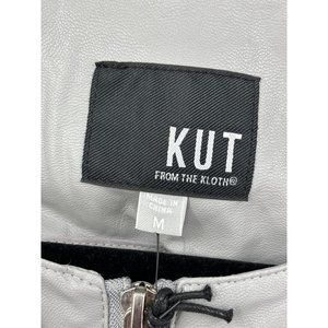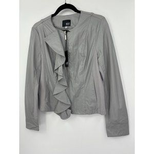 Kut From The Kloth Dahliana Moto Jacket Gray Ruffle Faux Leather Medium NEW