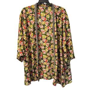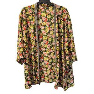 Kut From The Kloth Floral Kimono Jacket With Pearl Beaded Trim Sz Large