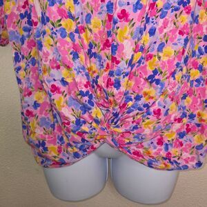 Kut From The Kloth Floral Twist Front Blouse Top Size XL