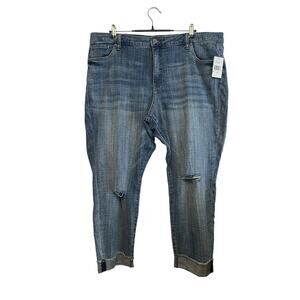 Kut From The Kloth High Rise Ankle Straight Leg Jeans Size 20W Blue Rips NWT