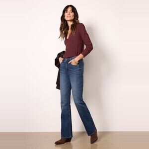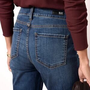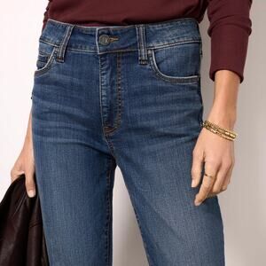 Perfect for day-to-night wear, these bootcut jeans are slimming and fabulously figure-flattering, cut from Kut From The Kloth's signature soft stretch cotton blend feature a gently flared leg and versatile blue wash with light whiskering and subtle distressing. Designed with Fab AB front pocket technique that is flattening, slenderizing and provides comfort.