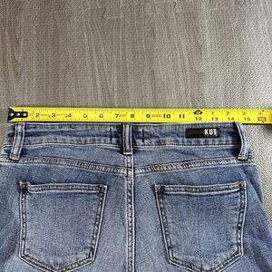 The Kut From The Kloth High Rise Reese Fab An Ankle Straight Leg Light Wash Size 6 jeans are a stylish and versatile addition to any woman's wardrobe. Made from a blend of spandex and cotton, these denim jeans feature a solid light wash color with a zip closure. The ankle length and straight leg fit offer a flattering silhouette, perfect for the summer, fall, and spring seasons. With a waist size of 28 inches and a regular fit, these KUT from the Kloth jeans provide both comfort and style for everyday wear.