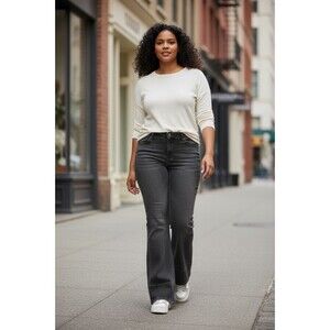Kut From The Kloth Jeans Women 16 Black Goldie Stretch Mid Rise Super Flare NEW