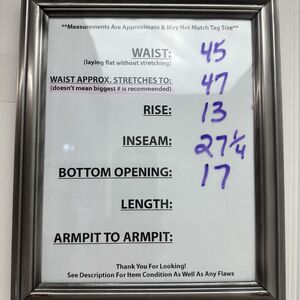 In some cases the measurements do not match the tag size because of shrinking, wear, etc. (See Pictures For Measurements And Condition)