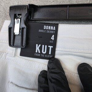 Labels/Markings: "KUT FROM THE KLOTH" branding; "DONNA ANKLE SKINNY" label; interior patch reads "CHANGE YOUR KUT CHANGE YOUR WORLD"