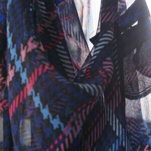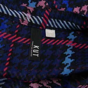 Kut From The Kloth Long Sleeve Houndstooth Plaid Sheer Long Sleeve Blouse L