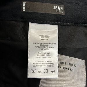Tags: classic high rise flare leg black velvet soft stretchy jean style career office work teacher holidays Christmas Winter dressy casual neutral versatile