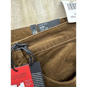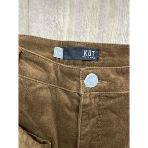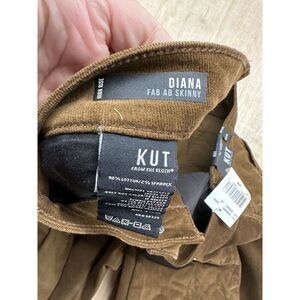 This is a pair of women's jeans from the brand KUT from the Kloth in a plus size 22W. The jeans are a brown corduroy fabric in a high rise skinny style, known as the Diana Fab Ab Skinny. They are new with tags attached, indicating they have not been worn. These jeans offer a stylish and trendy option for women looking for a flattering and comfortable fit in a versatile color and fabric choice.