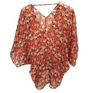 Kut From The Kloth Sheer Flutter Sleeve Floral Blouse Women's Size S