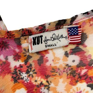 Kut From The Kloth Sheer Flutter Sleeve Floral Blouse Women's Size Small.