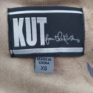 Kut From The Kloth Tayanita Faux Suede Tan Floral Open Drape Front Jacket Boho