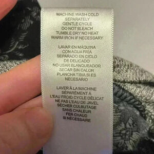 Floral pattern on front, plain black on back. Heather gray long sleeves.