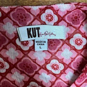 Kut From The Kloth Top Womens Large Floral Geo Button Up Sleeveless V-Neck Sheer