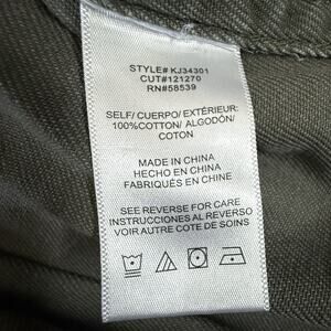 Awesome camo utility jacket from Kut From The Kloth, style KJ34301. Features a distressed design with light fraying and silver stud details throughout for an edgy, casual look. Made from 100% cotton, it’s breathable and sturdy. Classic button front, utility pockets, and lightweight feel make this perfect for layering year-round.