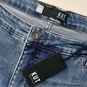 Kut From The Kloth's High Rise Rachel Fab Ab Mom Jean. A tapered straight leg, flattering high-rise fit. Shapes & Smooths! Soft Stretch Denim. 5-Pocket Design. Zipper & Button Front Closure. Raw Hem. The dark blue wash makes it easy to dress these jeans up or down. Super Versatile Premium Denim.