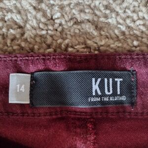 Kut From The Cloth, size 14 Stylish and comfortable women's burgundy jeans perfect for any occasion. Stretchy material, with measurements included in photos. Add a pop of color to your wardrobe with these versatile jeans. All questions welcome!