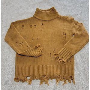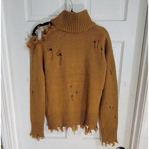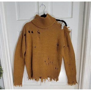Kut From The Kloth Womens Camel Viola Destructed Turtleneck Sweater Size XS
