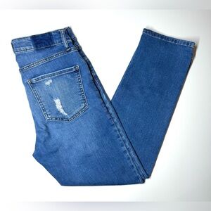 Stylish and comfortable blue distressed jeans. Perfect for casual outings. Durable fabric with a modern fit.