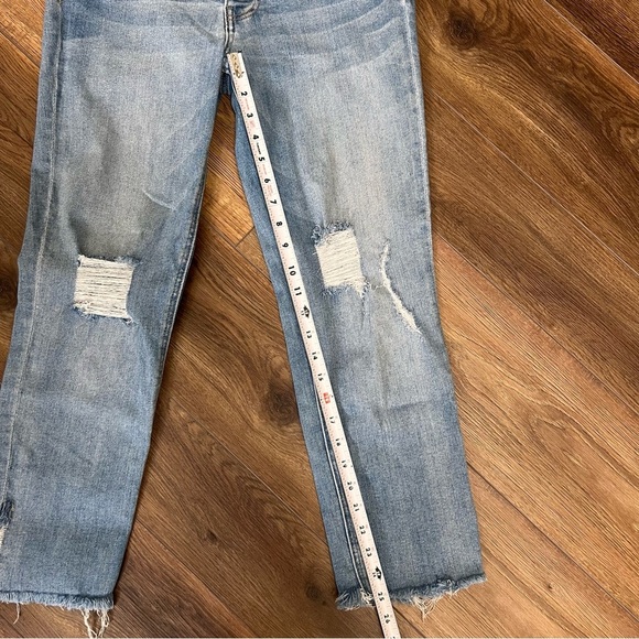 Kut From The Kloth Distressed Jeans Raw Hem High Rise Mom Jean Size 6 Light Wash Ankle Slit