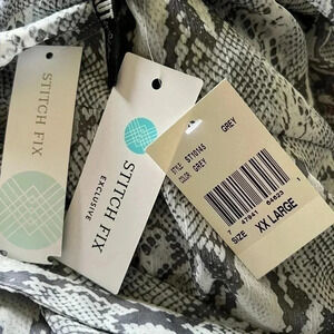 KUT from the Kloth dark/light grey with a hint of lt. blue in the right lighting (tag states color is grey.) Sheer, Snake Print, Button Down Sinclaire Blouse, Split Neck, Chest Pocket, Roll Tab Sleeves, Single Button Cuff, standup collar and curved hem in size XXL. BRAND with TAGS!