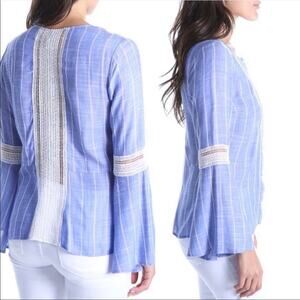 Kut From the Kloth Blue & White Boho Crochet Bell Sleeve Button Up Blouse Large