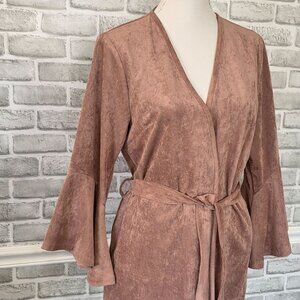 Kut From the Kloth Faux Suede Belted Jacket Dusty Rose Bell Sleeve Pocket Cozy