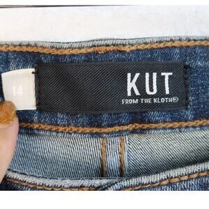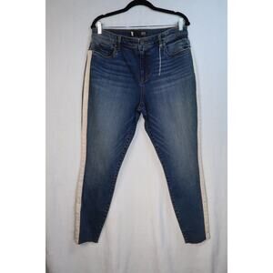 Kut From the Kloth High Rise Straight Leg Pink Side Stripe Dark Wash Size 14