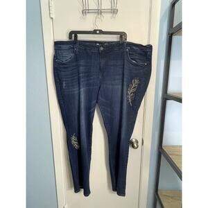 Kut From the Kloth Jeans Size 24W High Rise Boyfriend Embroidered Feathers Boho