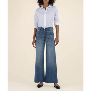 Kut From the Kluth Meg Wide Leg Jeans 12 button fly trendy light denim