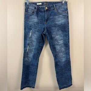 Kut Reese Ankle Straight Leg Camo Jeans 12 Distressed Y2K Streetwear Grunge