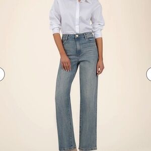 These high-rise jeans feature a timeless, streamlined design with five functional pockets, offering both style and practicality. Their clean, minimalist look effortlessly creates a bold statement, making them a versatile wardrobe staple for any occasion.