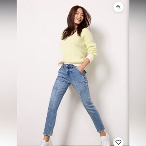 Add a little edge to your classic blue jeans with the Reese Utility from Kut from Kloth. Crafted in our comfort stretch denim, these jeans features a comfortable high rise and slim cut style. Minimal wear and tear, only worn a few times. The original pictures are a lighter wash than denim.