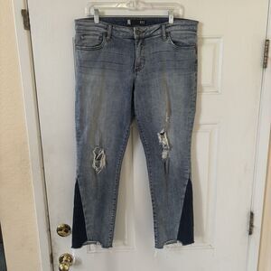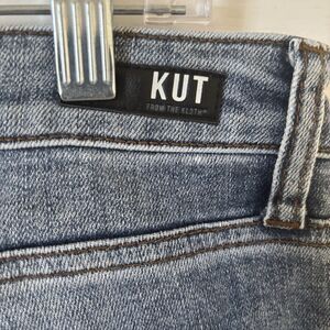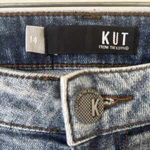 Kut from The Kloth Womens Reese Ankle Straight Leg 14 Ripped College Preppy Logo
