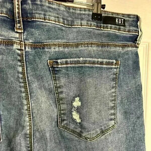 Kut from the Kloth Ana High Rise Fab Ab Flare. Size 18. Denim. Distressed.