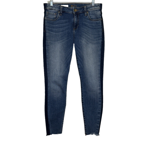 Kut from the Kloth Ankle Skinny Jeans Women's Size 10 Medium Wash Frayed Hem Stretch Mid Rise
