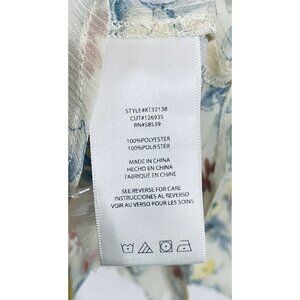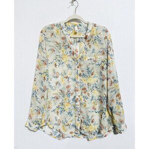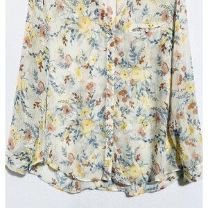 Kut from the Kloth Blouse Womens Large Sheer Ivory Floral Roll Tab Sleeve Boho