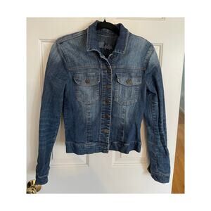 Classic denim jacket. Button-front closure. Chest pockets with flaps. KUT is my favorite denim brand but this tan much smaller than anticipated. NWOT. Great color and fitter cut.