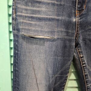These blue skinny jeans from Kut from the Kloth feature a stylish faded wash with natural whiskering patterns, offering a modern and versatile look. The denim's gradient effect adds dimension, making them perfect for casual outings. With a tapered leg opening, these jeans provide a sleek and comfortable fit.